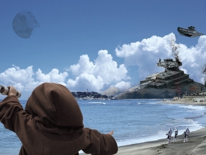 『ついに来てしまったか...思ったより早かったようだ..若きジェダイよ...自転車で海まで送ってやろう..フォースと共にあれ..』