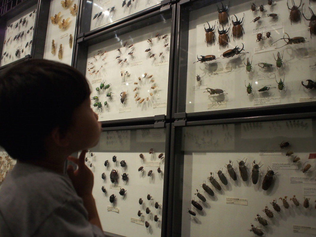 あれだけカブトムシを見たいと言っていた息子。 さぁ存分に見るが良い、100種類上ものカブトムシ・クワガタ達を。