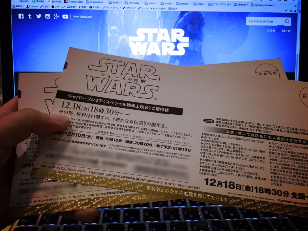 今日1通のディズニーから届いた手紙、ポストの前で悲鳴をあげた33歳…人生全ての運をここで使い果たしてしまうのか俺…"スターウォーズ スペシャル映像上映会・ゲストの舞台挨拶"当選しました(T_T)行ってきます‼︎
