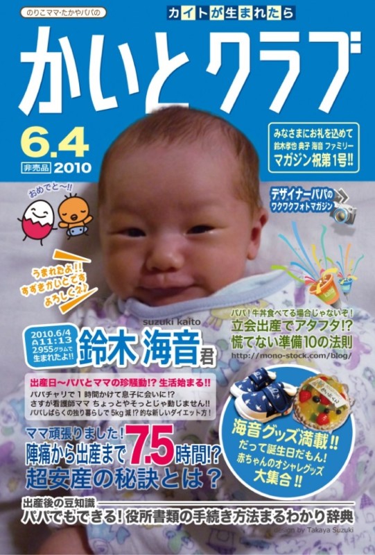 いや〜、遅らばせながら、生まれましたよのお葉書をお送りし増した、散々デザインで悩みましたが。結果的には雑誌の表紙デザインで落ち着きました。