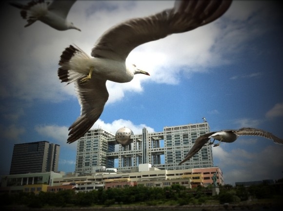 お台場はフジテレビとうみねこさん達。屋形船から撮りました♪しかもiPhone4で!