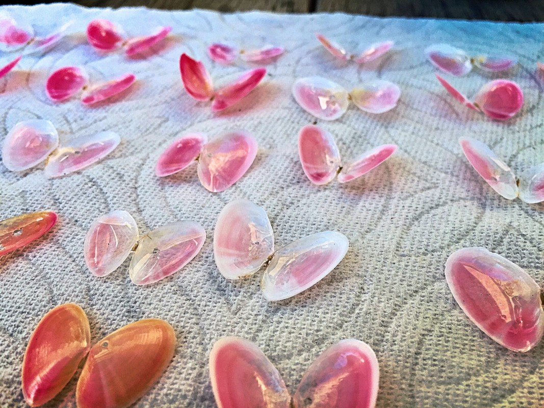 早朝から子供たちをチャリに乗せ海辺で拾いまくった桜貝( ˊ̱˂˃ˋ̱ )問題はこの後どうするかだ。。