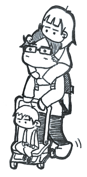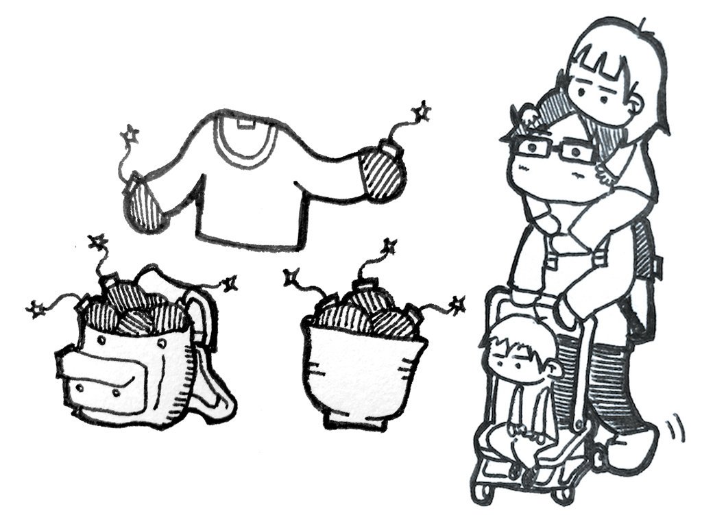 私は娘のスイッチがいつどうやって入るのかが未だに不明である...できれば肩車で登園はしたくないが...背に腹は替えられない...バスに乗るため意味のわからないスタイルで登園した。