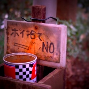 そこに行くまでの試練とアイテムがヤバイ。昔はランドセルしょってスタスタと駆け上がっていた道も、息子を抱いてあがるとなるとまた別である。途中の簡易灰皿が何やらカワイイ、だいぶ見慣れてたけど改めて写真で撮っておいた。
