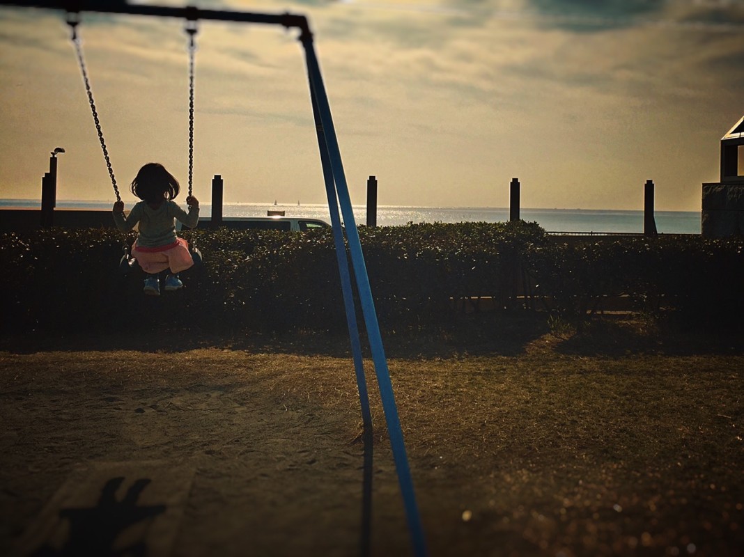 パパが背中を押したら海も水平線も見える、なんだって叶えてやるよ。
