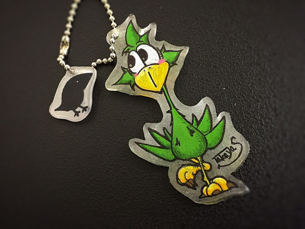 緑の鳥ピート(私作)と相棒ジャッカス(中村先生作)のキーホルダー作りました。