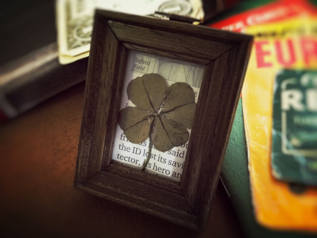 校外授業で学生が見つけてきてくれた四つ葉のクローバーの保管。