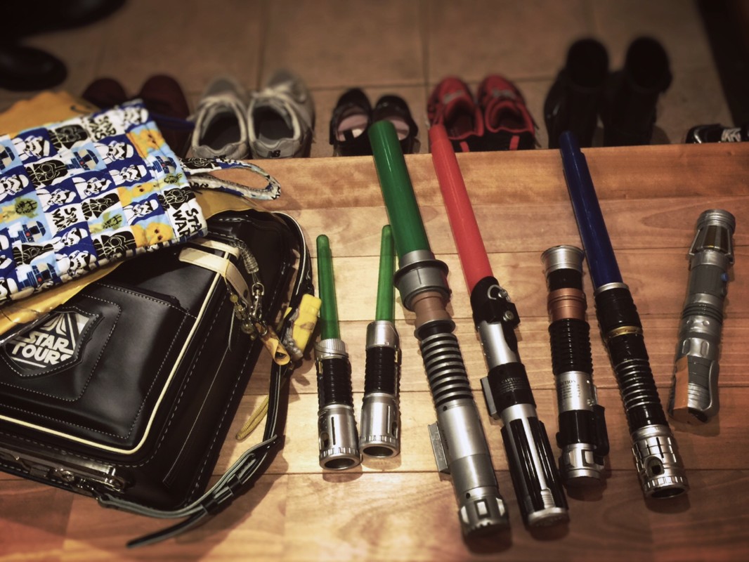 帰宅すると玄関先に家中のライトセーバーが……なんだ⁉︎ 始まるのか⁉︎ そうか今日は洋画劇場で帝国の逆襲の日だ。