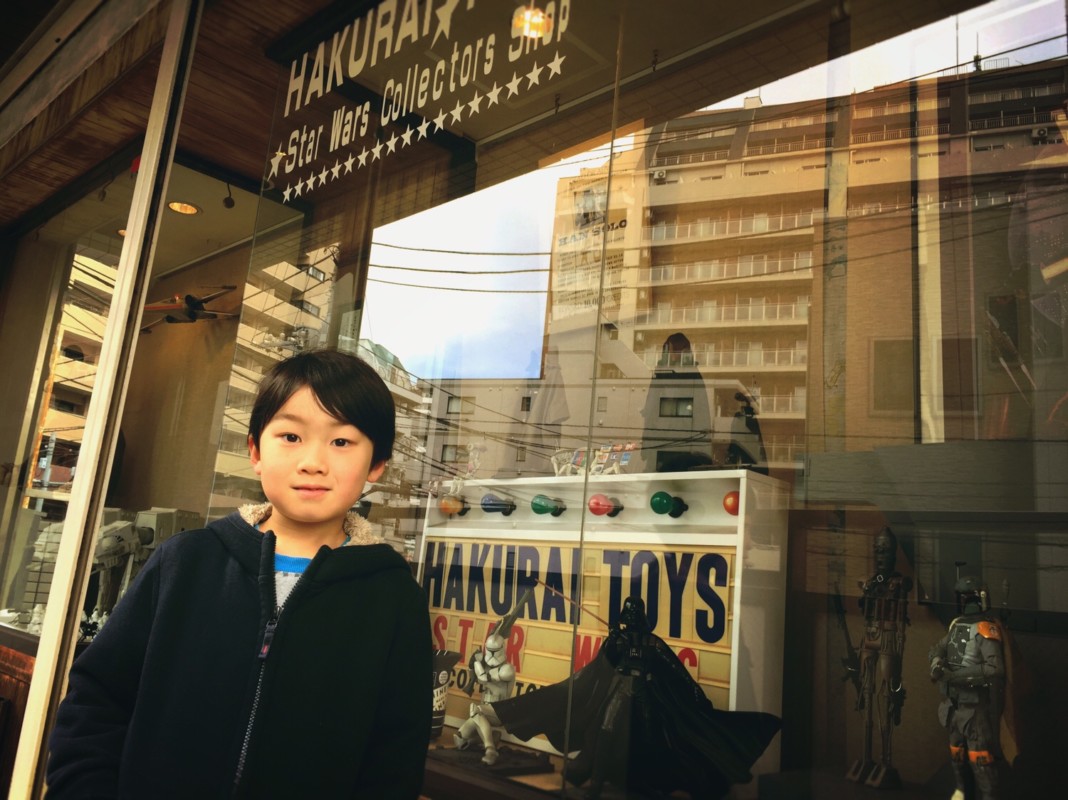 突然の学級閉鎖により仕方なく有給使うが、仕事が終わらないので、息子をつれて職場で仕事を手伝わせる(笑)ご褒美に人生初のスターウォーズグッズが200%満喫できるHAKURAI TOYSへ連れて行ってやった。