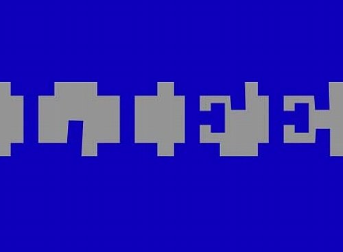 これを見て、もう一度上の図を見るとなんとなく文字が認識できるようになるけど、先入観なしでパッと見るとただのドットにしか見えない。