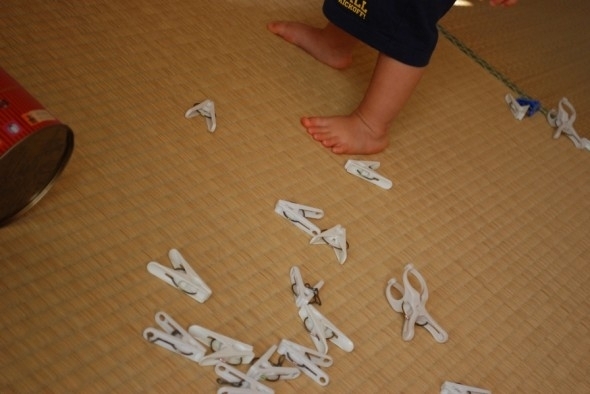 好奇心が毎日毎日膨らんでいくんでしょう、パパの小さな書斎スペースは無残に荒らされ、物干バサミをぶちまける。部屋から部屋を縦横無尽に冒険する。