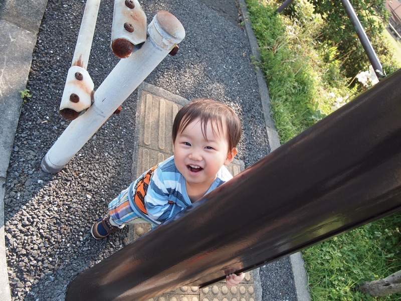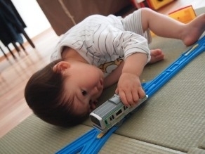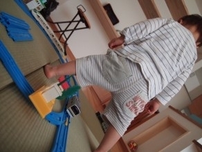 散々遊んで終いにはゴジラのようにプラレールに跨ってトンネルをひたすら演じています。。ってかホント人間って言う生き物は1.11年でここまで知恵をつける生き物なのねww、、