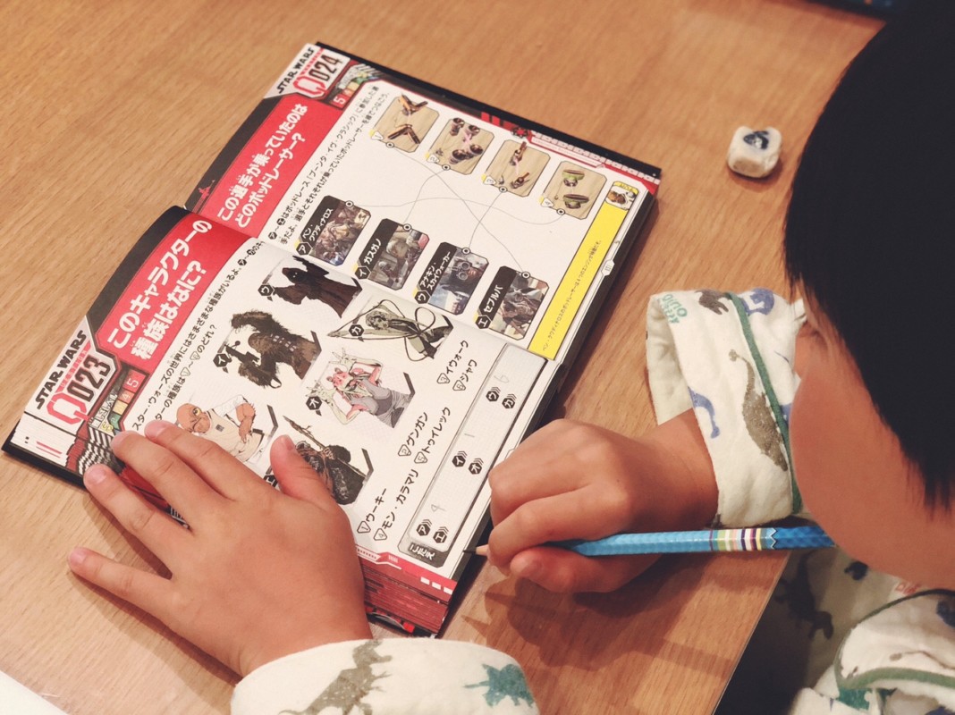 宿題やってんのかと思ったら、昨日買ってやった[スターウォーズ クイズバトル]を真面目にやっている。