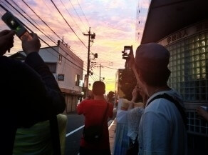 そして今日は台風がすべてをかっさらっていったかの様な空でした。卒業生も来てくれました、全員で学校を出た瞬間綺麗すぎた光景が広がっていました。