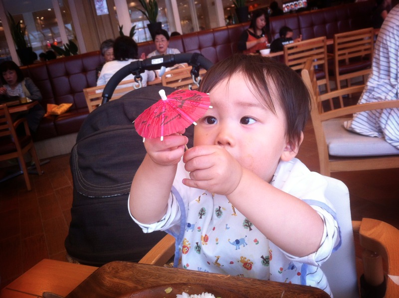 お子様ランチに刺さってる傘でいつまででも遊んでいます←早く飯を食うんだ(-_-)