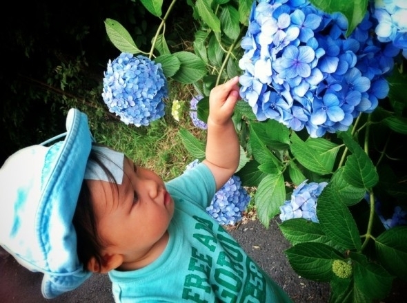 相変わらずママが夜勤の日は、パパと冒険に出かけています、先日はアジサイを探す冒険へ繰り出しました、まぁ家出て5分で見つけましたが....