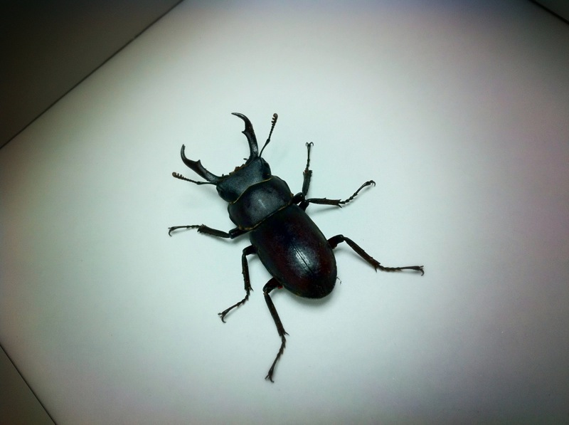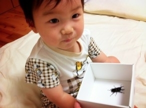 ミヤマクワガタの子供?っで多分あってると思います。網戸につかまっていたので息子に見せてあげました、そのうち嫌でも捕まえて帰ってくる歳になると思うけど、意外とビビッてましたww。