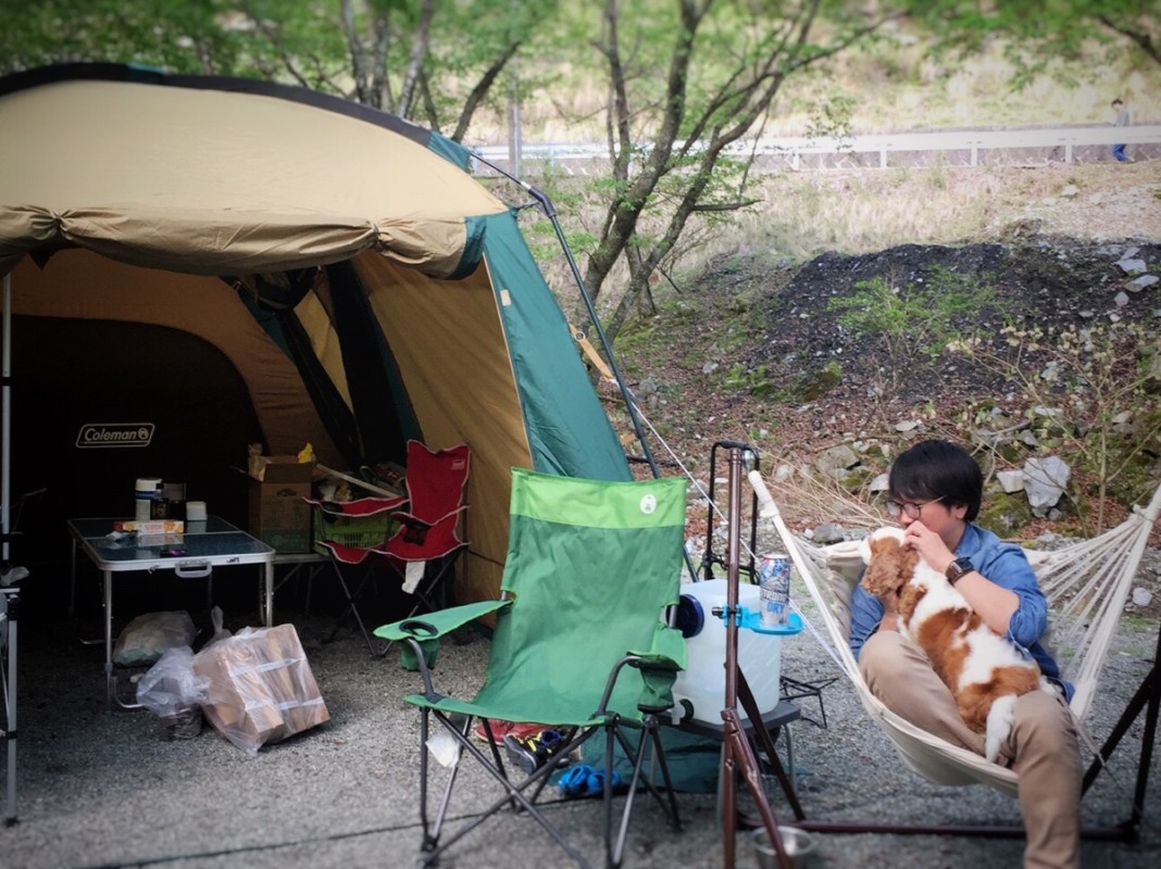 やめなさいと言っても犬が勝手に乗ってくるキャンプ。