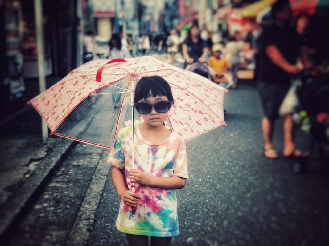晴れているのに『日傘だ』と言い張り、ママのサングラスをかけ、堂々たる姿でパパに手を引かれ商店街を歩く娘。