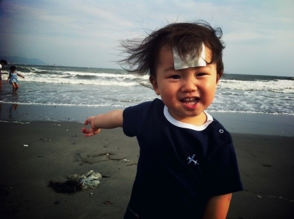 海です!!砂浜に行ったのは初めてです、波打ち際までですが楽しかったのかなかなか帰ってくれませんでした。ツイッターでもつぶやいてるけど、どっちが子供だかわからないくらいはしゃいでます。