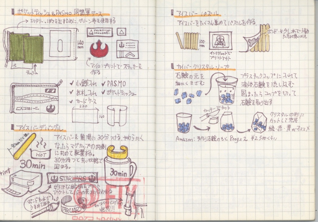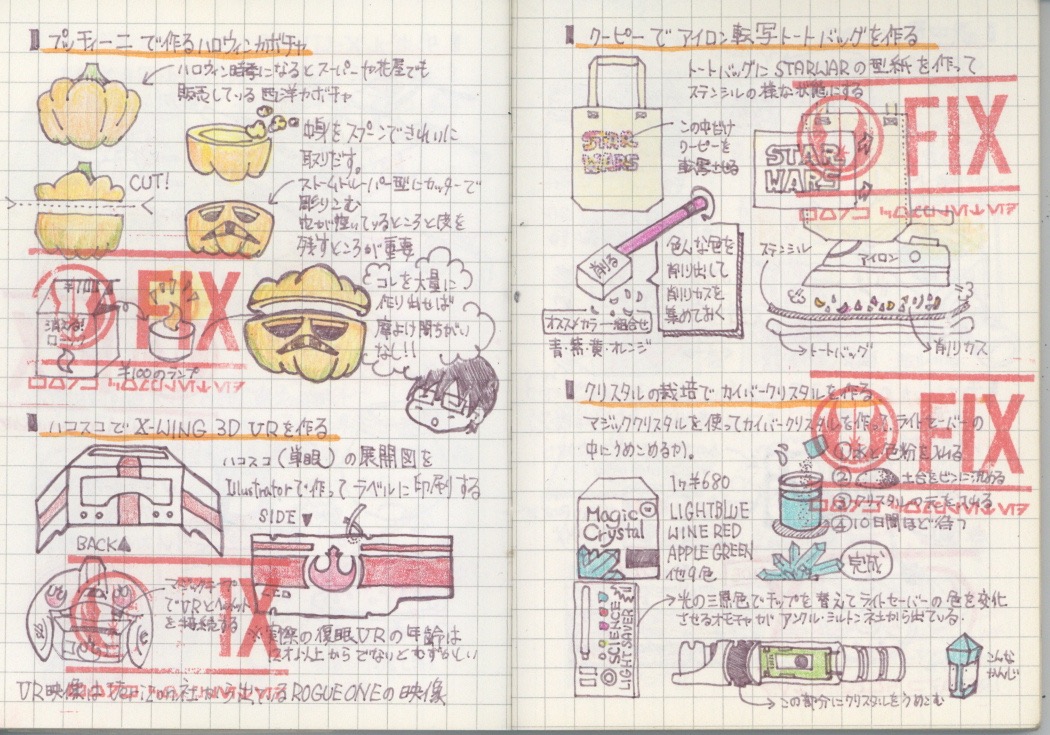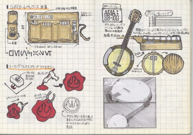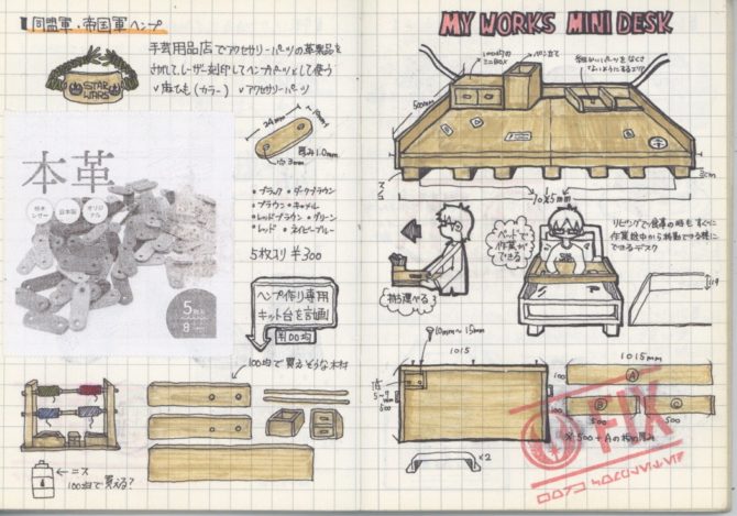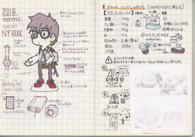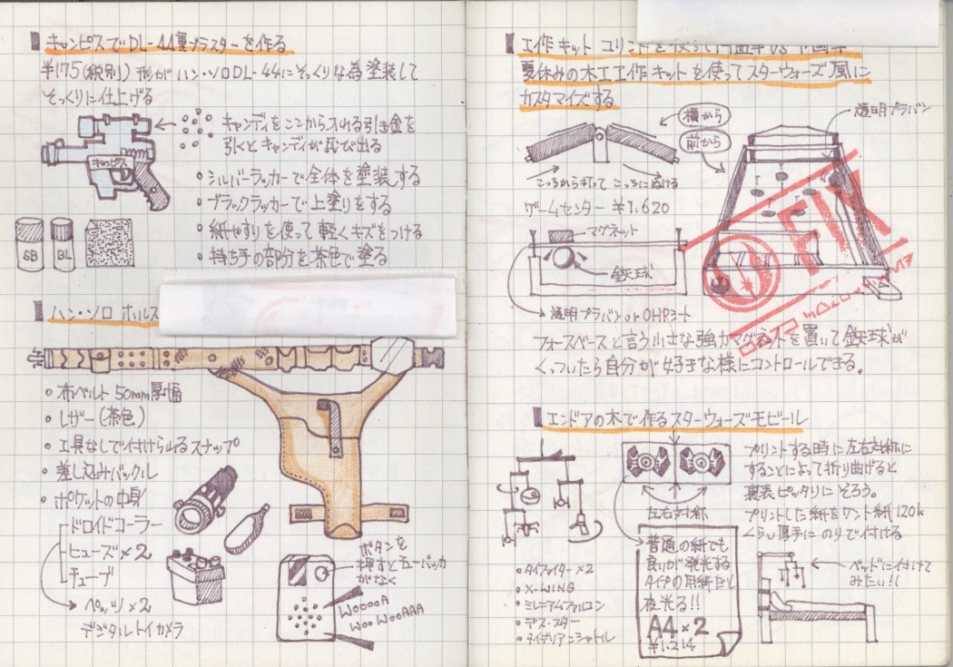 途中ところどころ、工作ではなく自分のファッションの記録やら欲しい物を書き留めたりして、『あ〜そういえばこのときこんな格好してたな』とか『こういうの持ってたな』とか思い出せるようにしてみたり。
