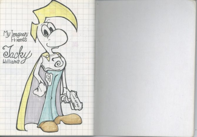 最後のページに突然現れたジャッキー・ウィリアムズというキャラクターだが、実は私が幼少期に作り出した架空のキャラクター(イマジナリーフレンド)である、どんなときにも私の近くにいてアドバイスをくれるヤツでした。