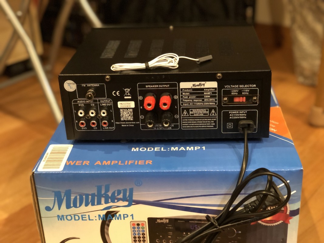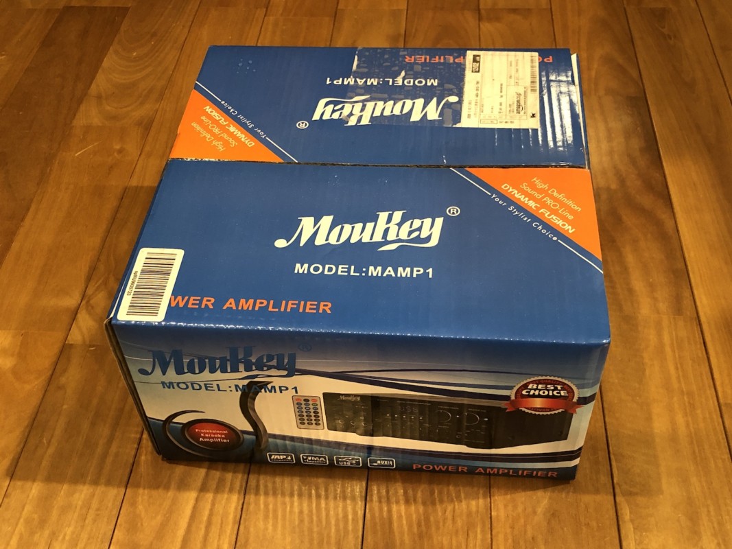 そしてAmazonのお急ぎ便で届いた、Moukeyのパワーアンプ。 これでもしアンプとしての機能を果たさなかったら私は嫁と子どもたちからどれだけのバッシングを受けるのだろうか.....おぉ怖い。