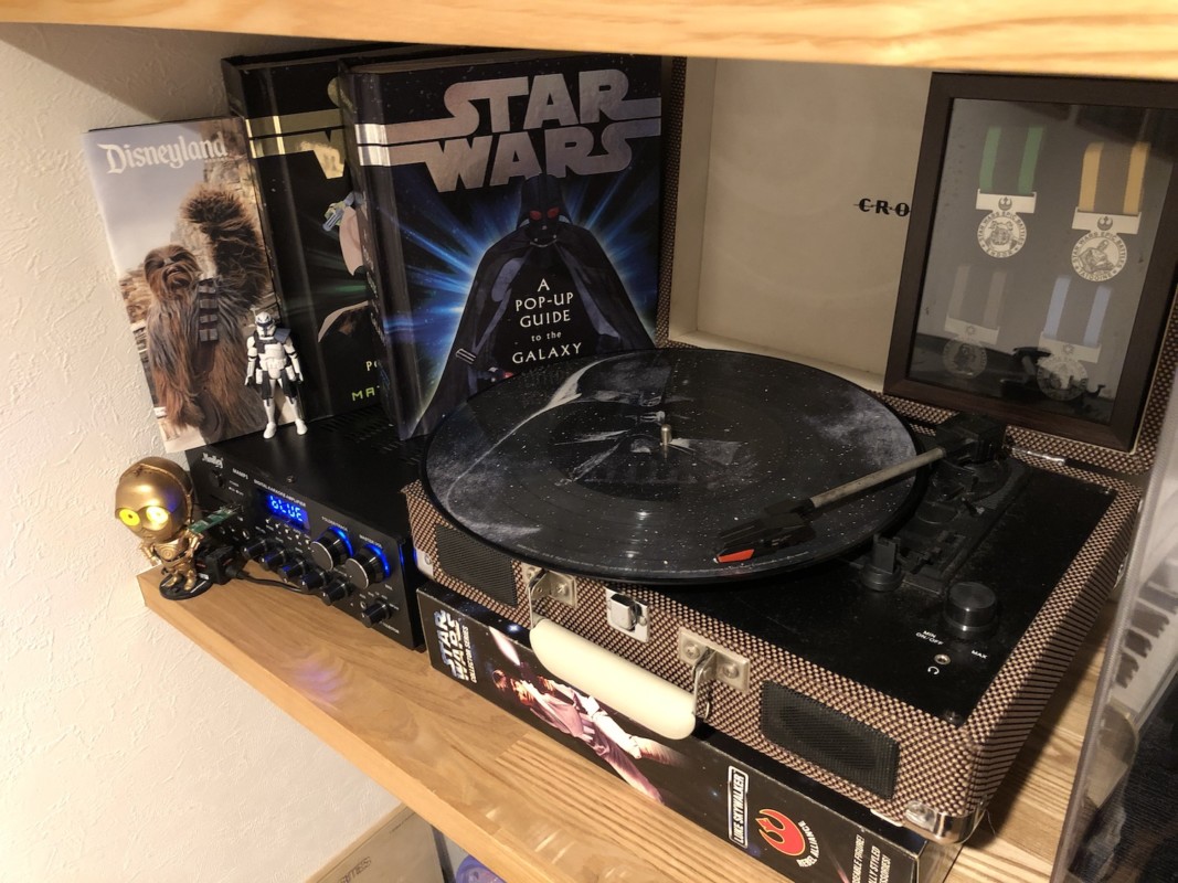 そしてそして、大好きなアナログレコードプレイヤーもアンプに接続してスピーカーから出力できるようにしてみた!! これでビートルズもビーチ・ボーイズも大好きなスター・ウォーズのレコードもスピーカーから流せる♪
