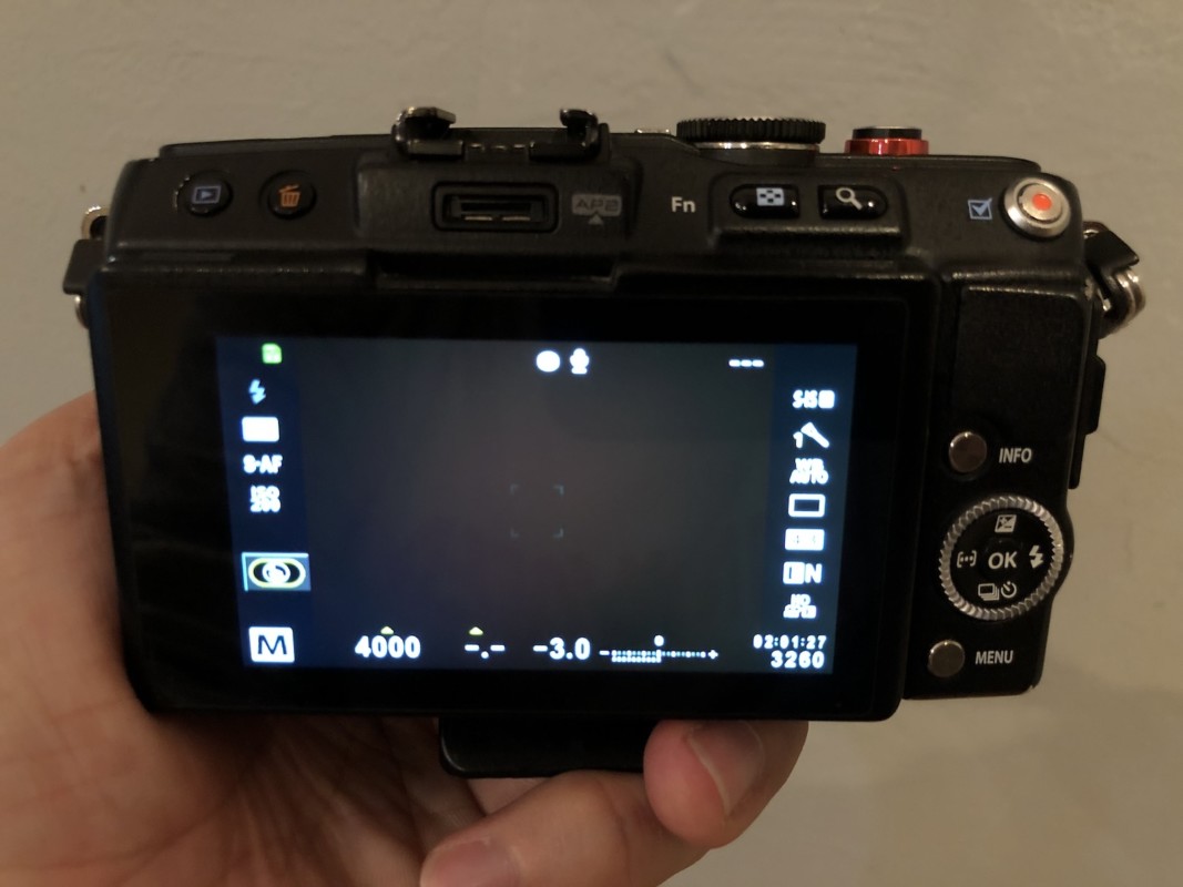 なので私が撮影する時は(左)マニュアルモードで(右)4000と書いてあるのがシャッタースピードなのでココを上げたり下げたりしながら撮影している、そしてこれに加えISO感度というフィルムの感度設定を予め決めておく感じになる。