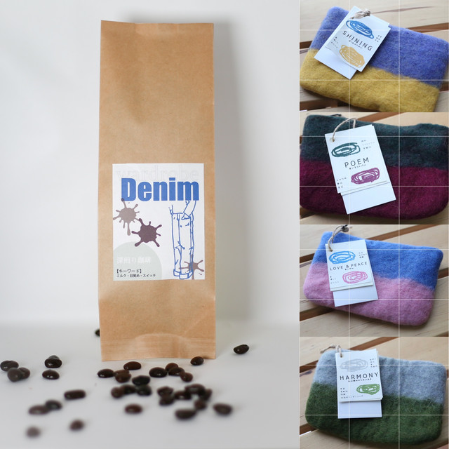 浅煎りor深煎りのコーヒー100gとウールフェルトポーチがセットで¥1,650(税込)送料別途もすごく可愛らしい、ウールフェルトポーチはネパールのお母さん達が一つ一つ手作りで製作したDODOオリジナル商品とのことで、ここでしか手に入らない。