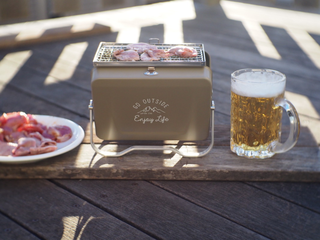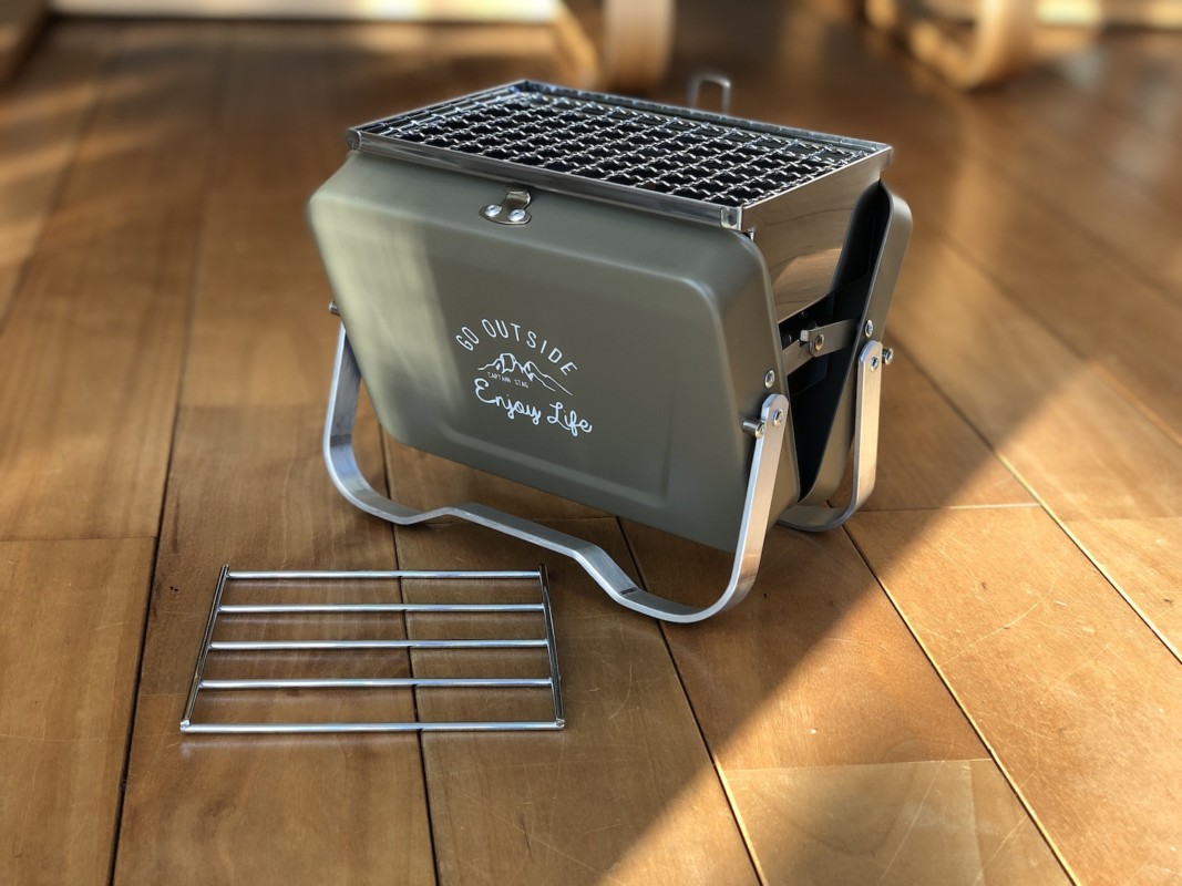 カワイイフォルムの中はコンパクトに収まったグリルの道具が収まっている、これで自分のためだけに肉を焼き、自分のペースで酒を飲み、ぼーっとしていても怒られない時間が作れてしまうのではないだろうかと妄想が膨らむ。