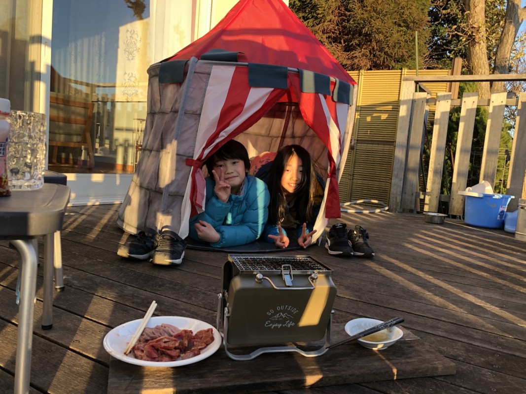そして子供用のテントを持ち出し、好きなラジオを聞きながら、独りウッドデッキで繰り広げられる宴。これはもう新たな週イチの楽しみとして認定せざるおえないほど最高である。
