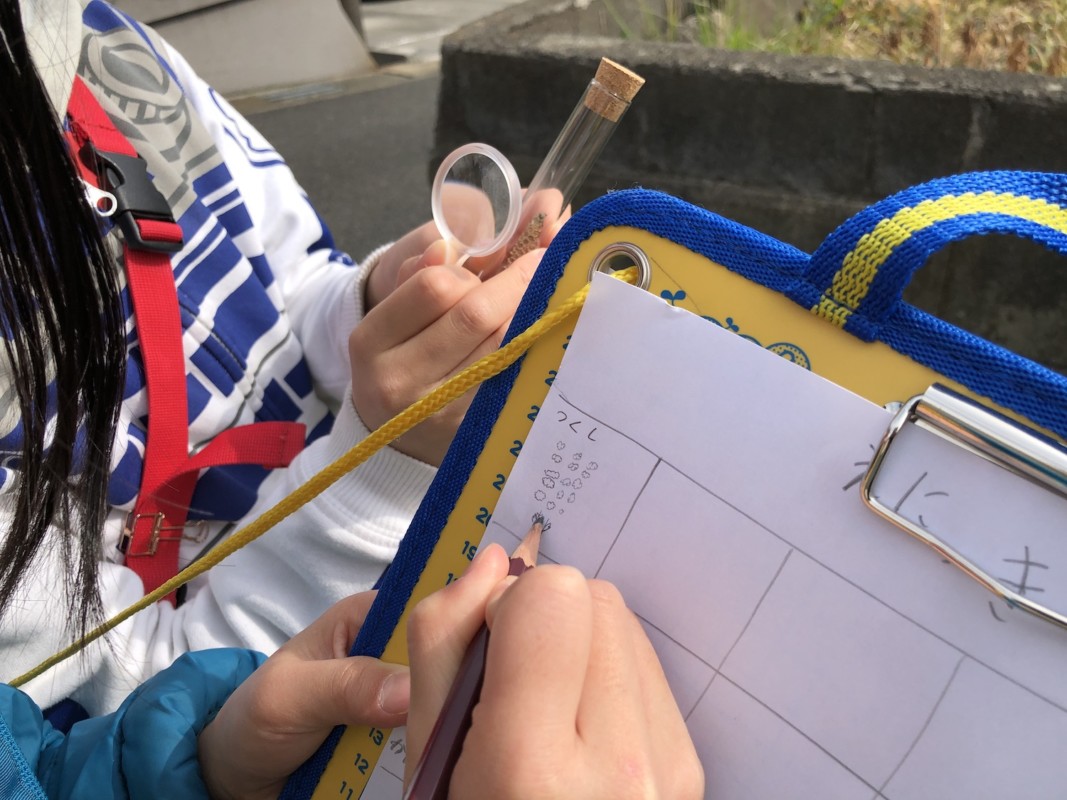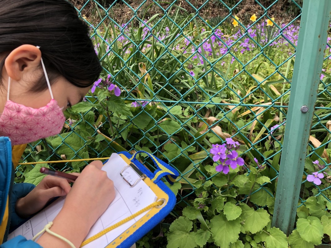 植物の採集をするべく子どもたちと一緒に、手作り採集キットを持って繰り出した。