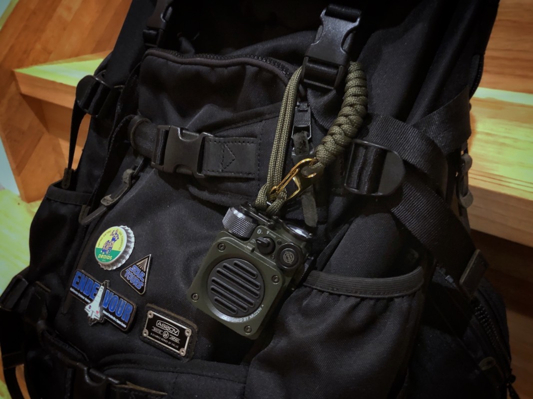 まるでアーミーの無線機のようなモチーフで無駄のないフォルムすべてのパーツが完璧なレイアウトで凝縮された手に平に入るタフなのにどことなくカワイイスピーカー。
