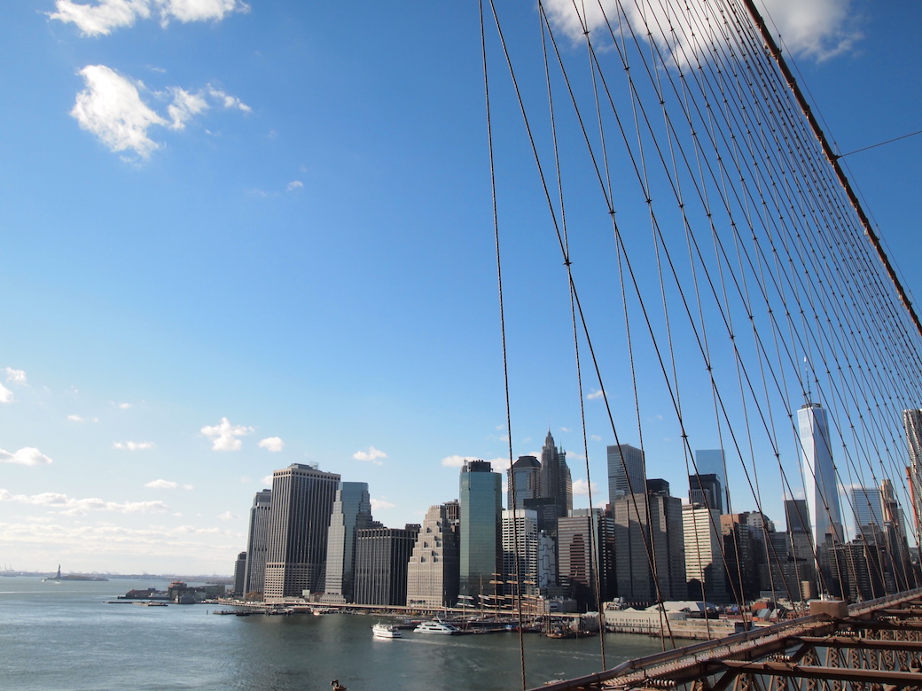 ブルックリンブリッジが見えてきた、その向こう側がマンハッタンだ。