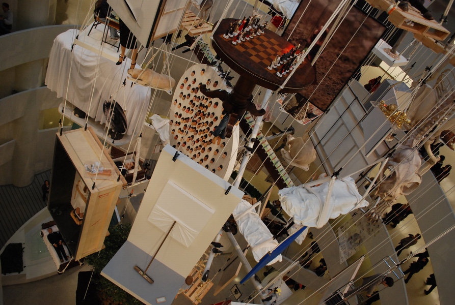 中心の吹き抜けを活かしたアート作品は非常にインパクトがある。