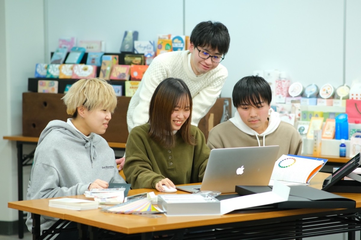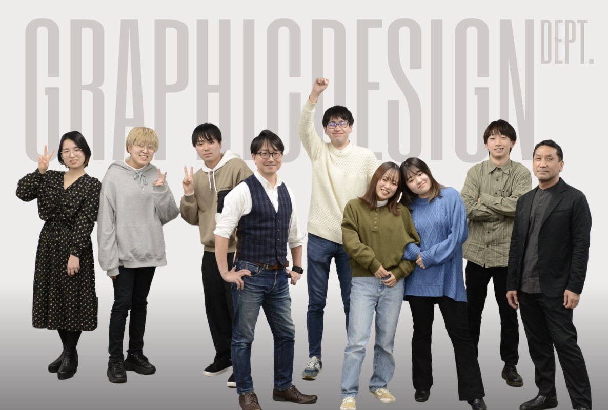 先日仕事で学校案内の撮影をするため、受け持っているクラスの子達を集めて撮影協力をしてもらった。昨今SNSなどで顔を写したくない子もいるので、許可してくれる子だけ集まって撮影したグラフィックデザイン科のイメージ撮影だ↓