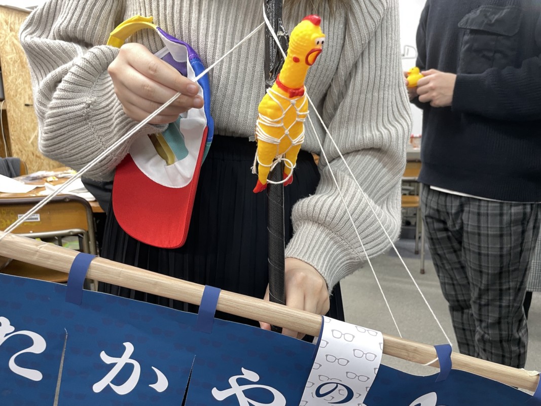 移動宣伝用の看板もなかなかのクオリティである、てっぺんに縛り付けられたビックリチキンはいったい何を物語っているのか…まさかチキン=担任ではないか…いささか不明だが面白いから良し(笑)