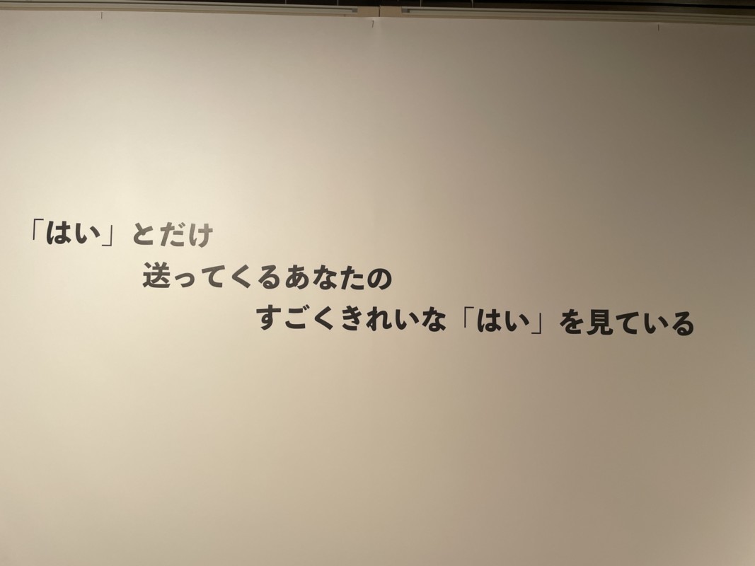 ↑たくさん展示されている短歌の中で、自分の心に刺さるものが必ず見つかるのもなにか運命的で楽しい、私は嫁から送られてくる「はい」が美しく思うこともあれば、恐ろしく思うこともあるよ、っと馬鹿なツッコミを心のなかでしながら観覧している。