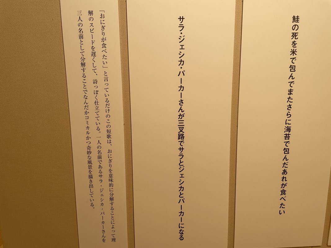 他にも短歌を色々な場所に登場させてしまう面白い表現がたくさん展示されている。