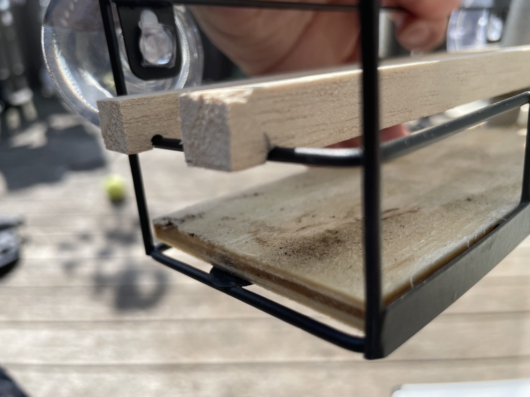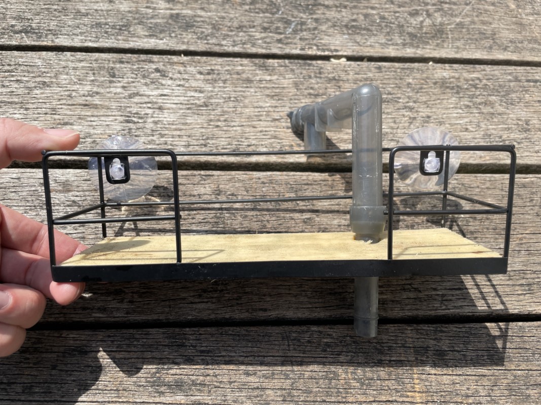 このような状態のラックが出来上がる。 計画としては二層式で苔を管理できるラックになる、1F部分は完全に水に浸かっている状態で、魚たちの隠れ場所にもなり、2F部分は少し水に浸かる状態になり、苔にとっては最適な水位が保たれるという設計だ。