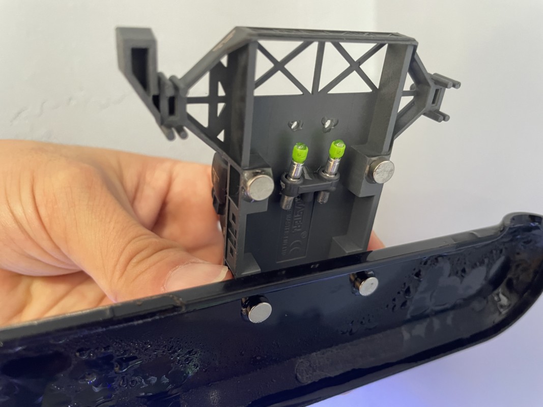 強力マグネットを使用した理由は、簡易スペースポートというコンセプトなので、金属にくっつけてどこでも発着ができるようにしようと思ったからである。