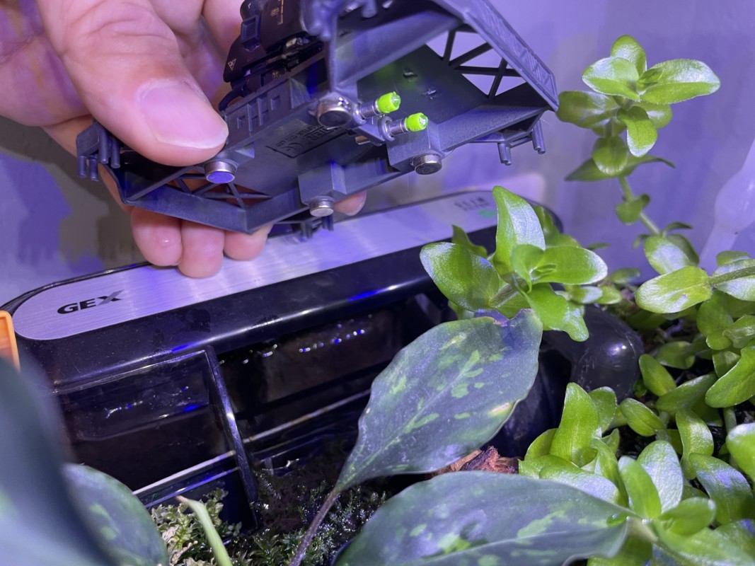 ↑これはうちの苔テラリウムの浄水フィルターの蓋裏に磁石を取り付けて、スペースポートを着脱可能にした状態。