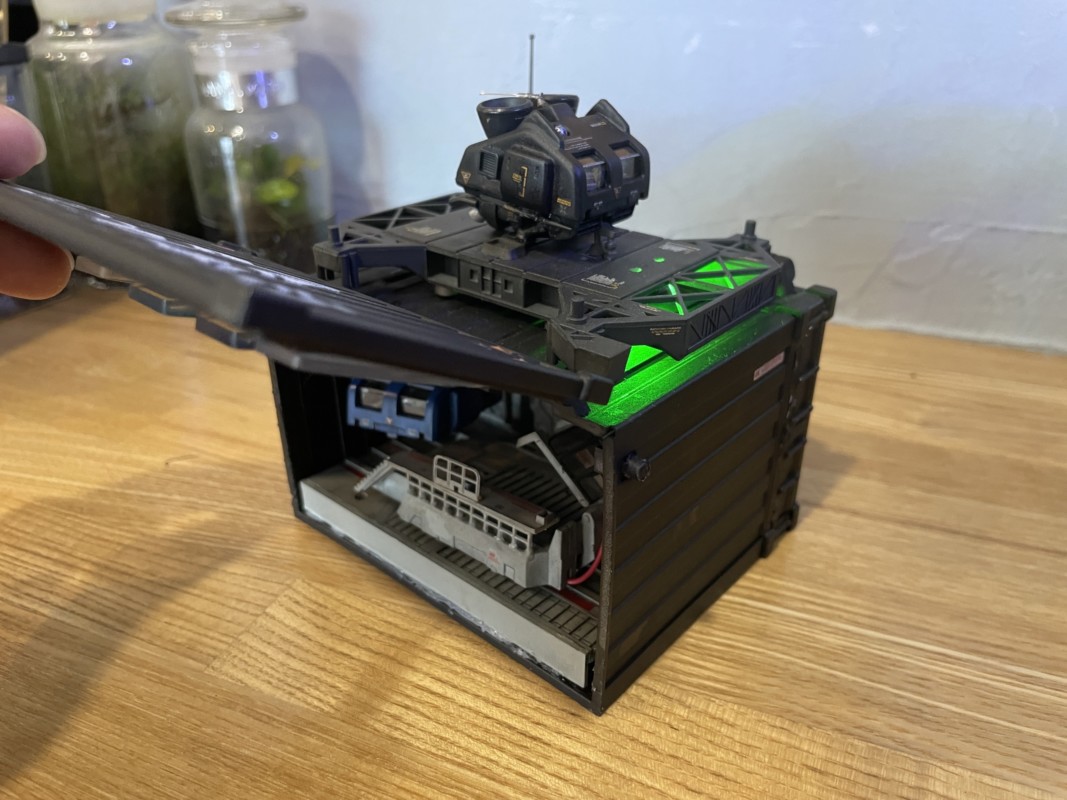 暗くした状態でミライトを点灯するとかなりリアリティのあるスペースポートが再現できる。