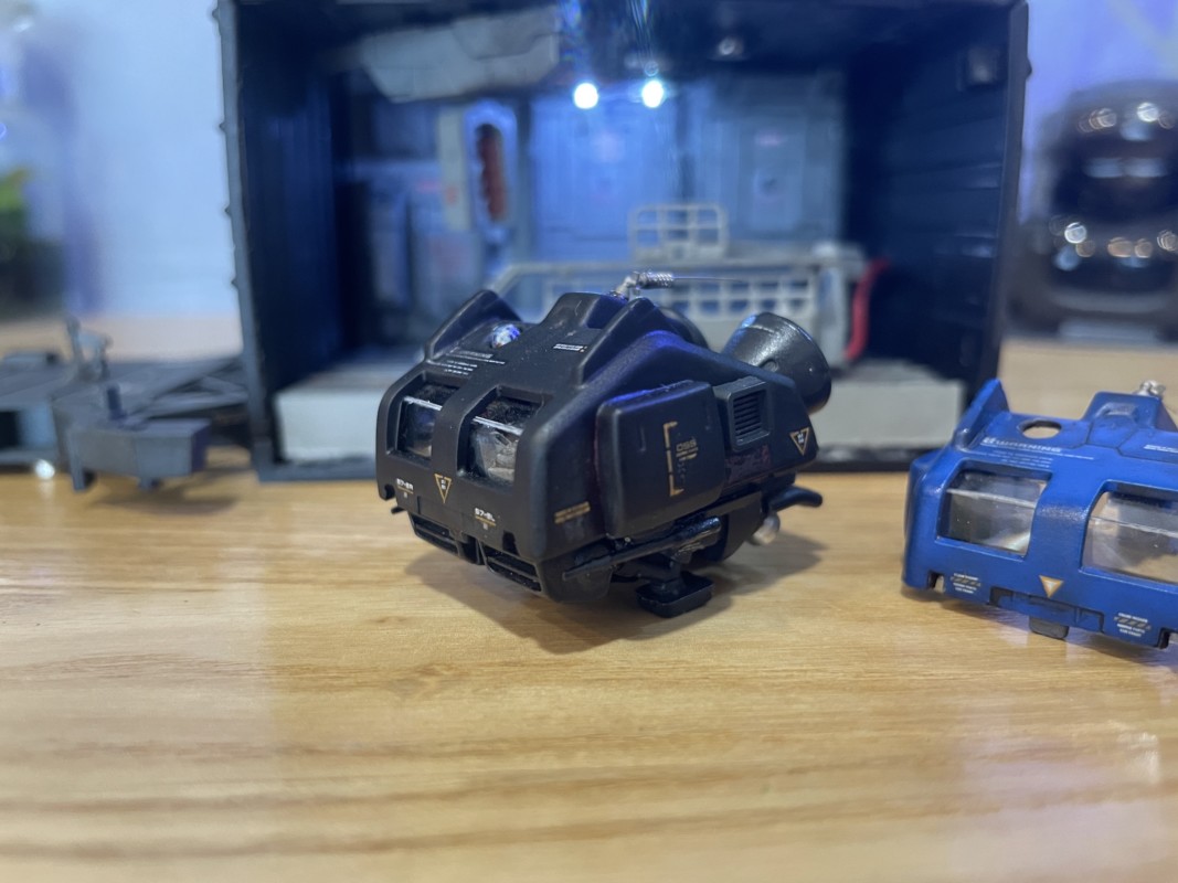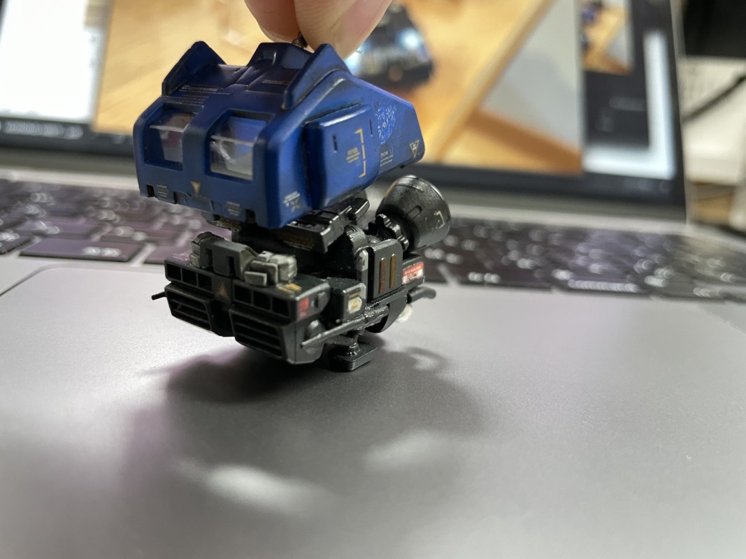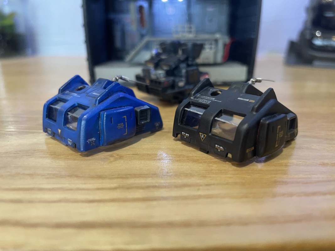 ↑最初のホップス5の機体はブルーベースで作成したが、せっかくコックピットと外装プロテクターが取り外し可能なのであれば、違うボディーカラーで付け替えられるようにしたい…