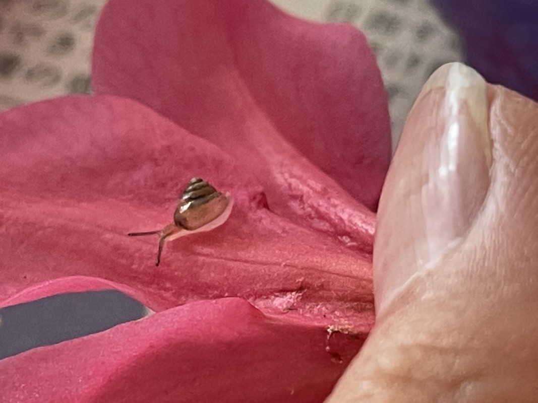 そして突然の出会い、こんにちはカタツムリの赤ちゃん。
