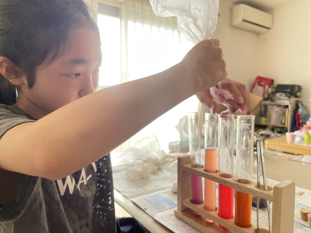 1時間ほど経って絞り出された色水、これは、、もはや父と娘の努力の結晶といっても過言ではないのだろうか?