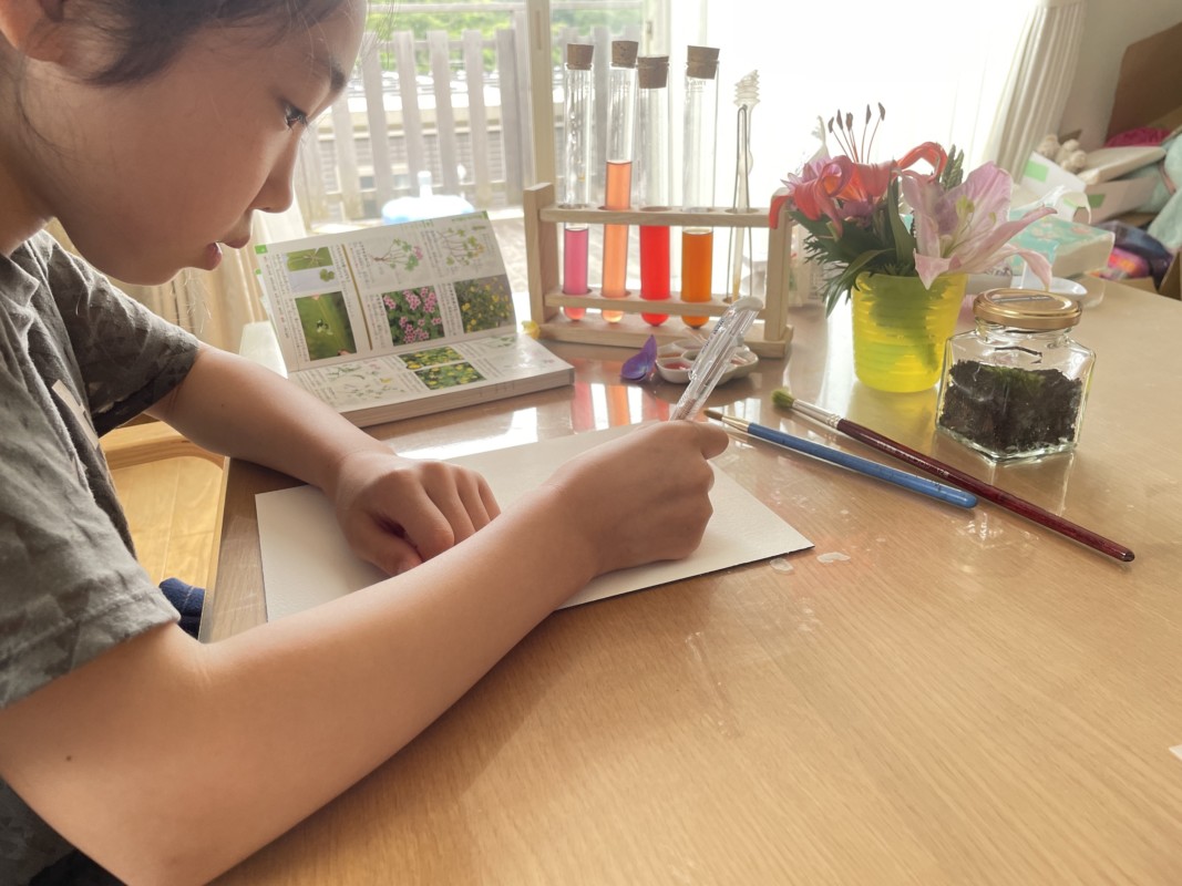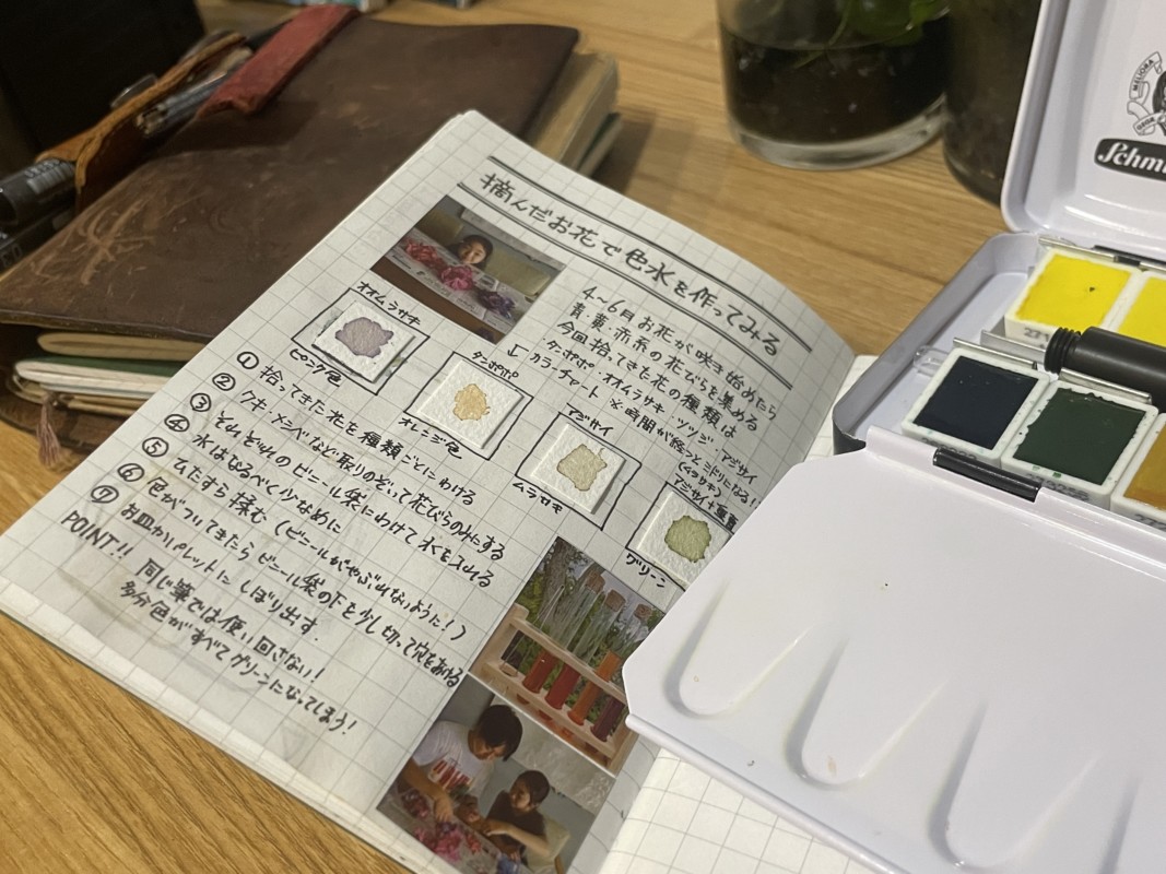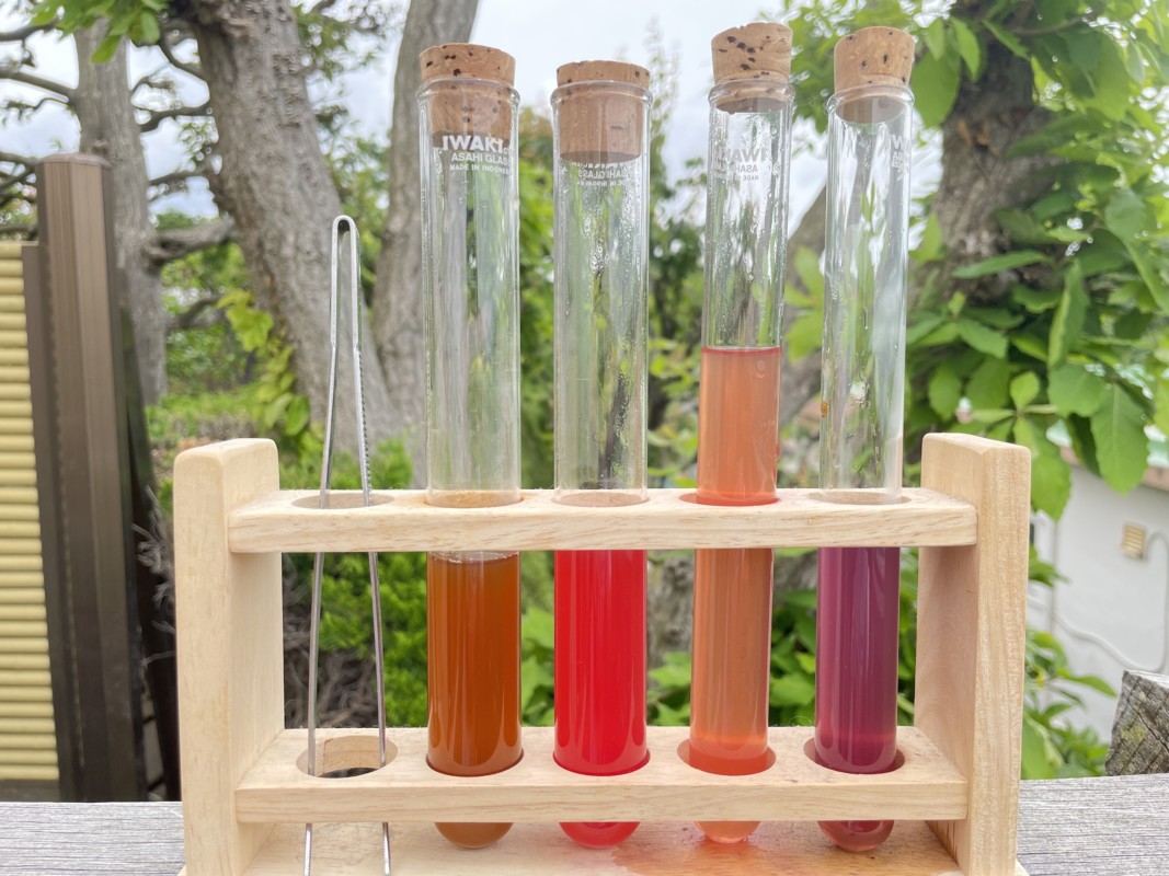 思っていた以上に色が出て驚いた、研究結果としては、たんぽぽなどの黄色い系の花からもキレイな黄色ができるのと、意外なことに青系の色はキレイな色にはなってくれなかったのだ。