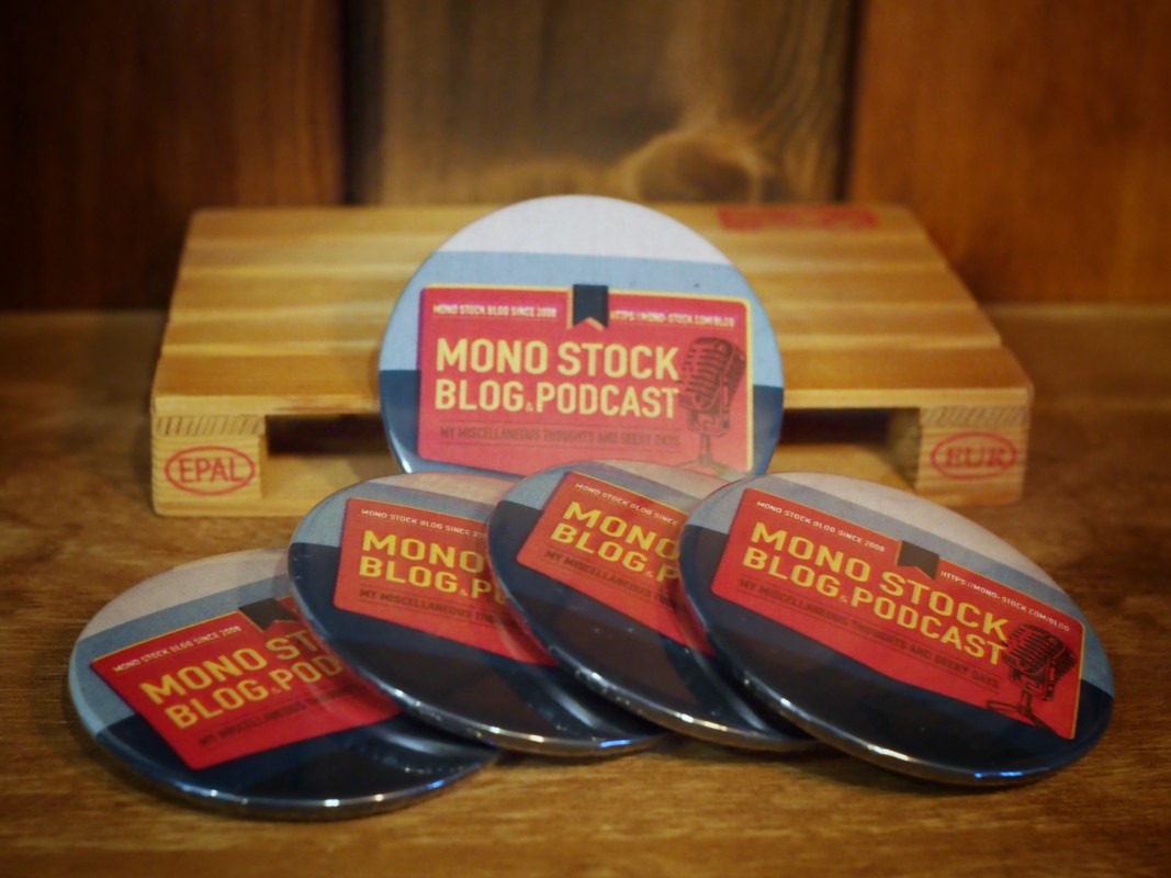 MONO STOCK BLOGのロゴが入ったオリジナル缶バッジです。