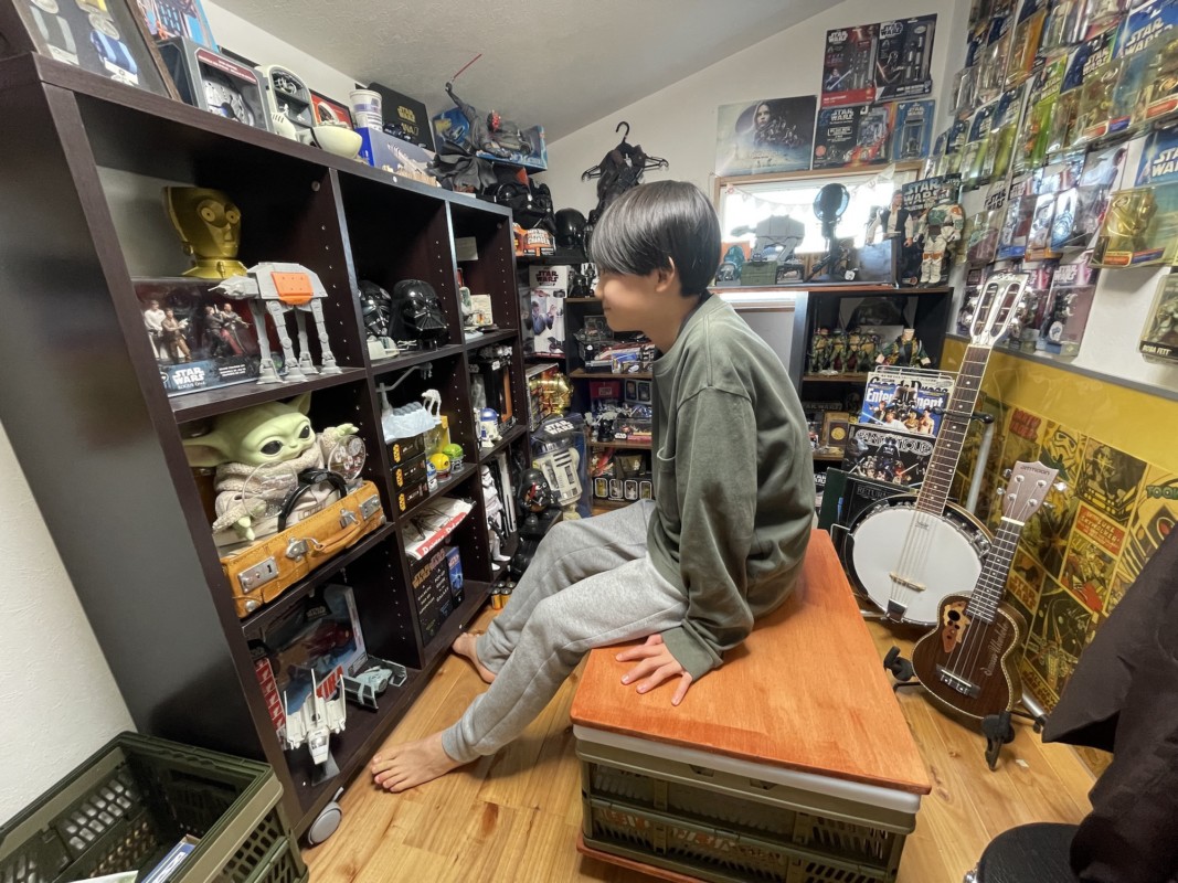 こんな風にチョンと座って、作業台で作業もできちゃうし